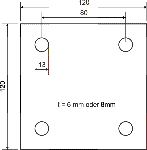 Ankerplatten gelocht, Größe 120 x 120 x 8 mm Edelstahl V2A
