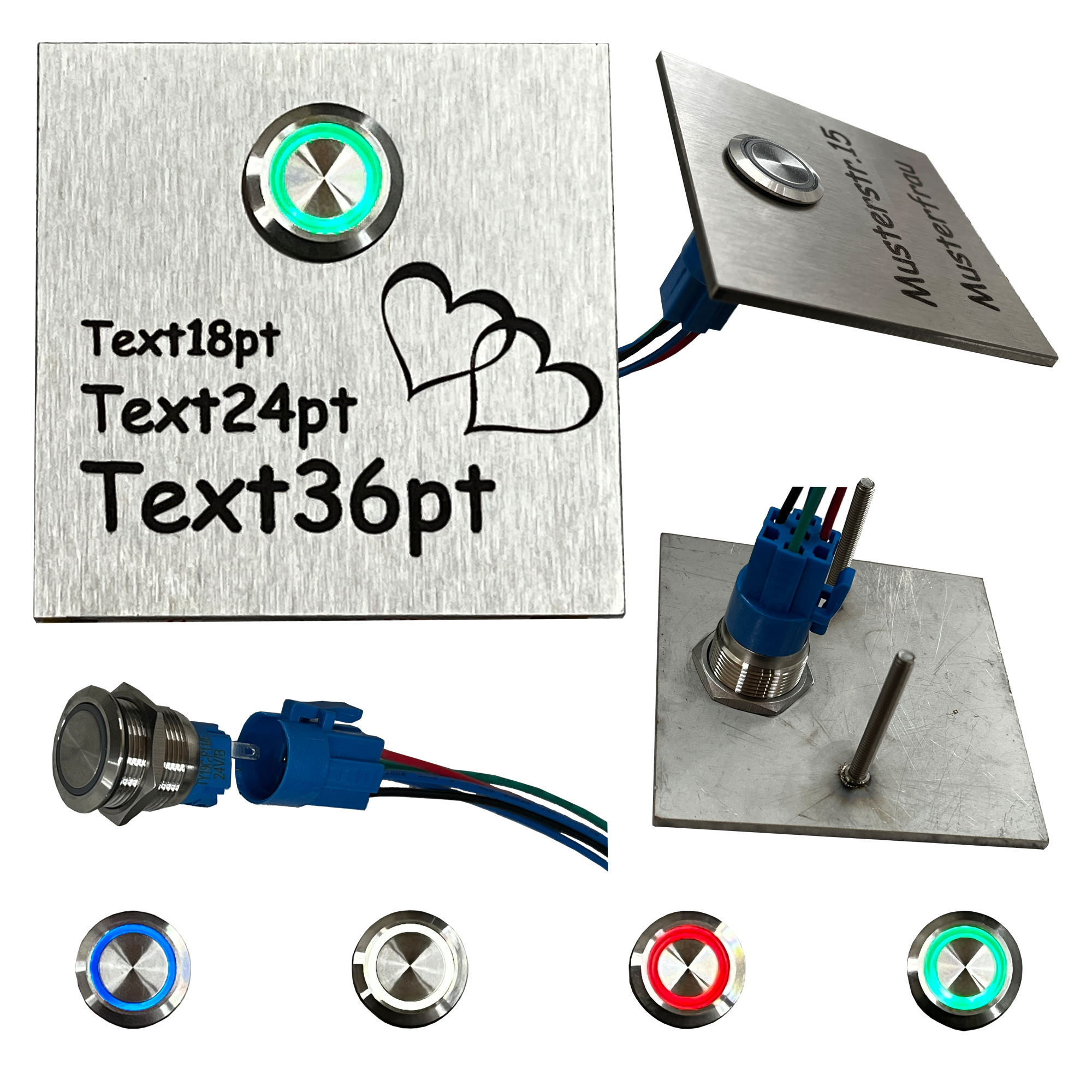 Klingeldrücker: | LED - blau, LED - grün, LED - rot, LED - weiss, ohne Beleuchtung |
