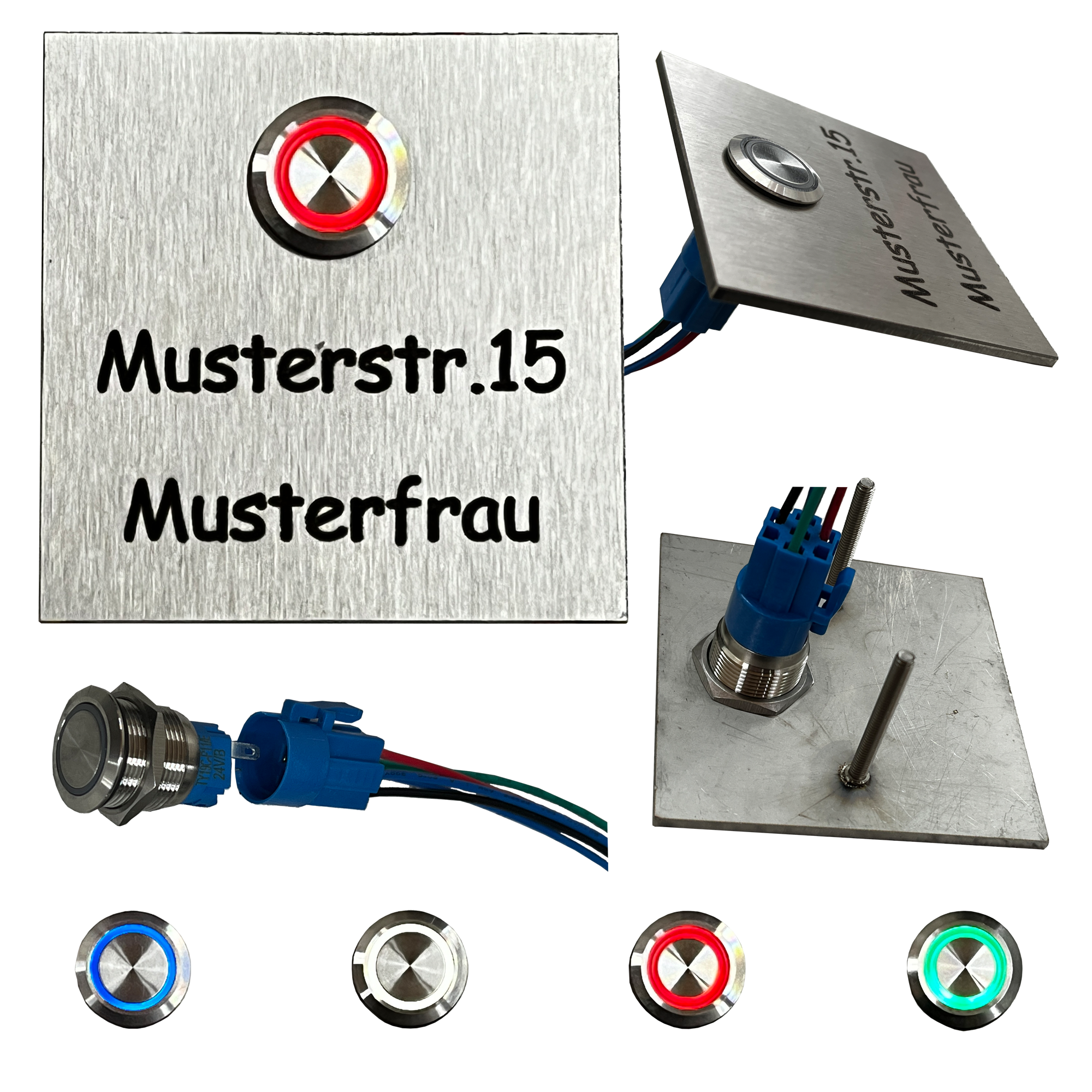 Edelstahl Klingel Türklingel 8x8 cm LED - rot Ohne Gravur V2A Klingelplatte LED Beleuchtung