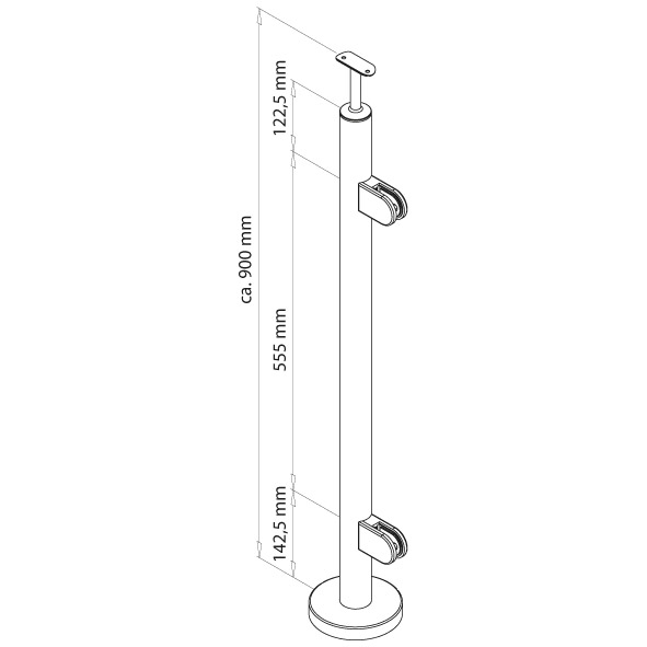 Geländerpfosten mit Glasklemmen, Endpfosten Edelstahl V2A