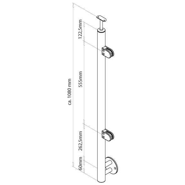Geländerpfosten, vollständig aus Edelstahl V2A