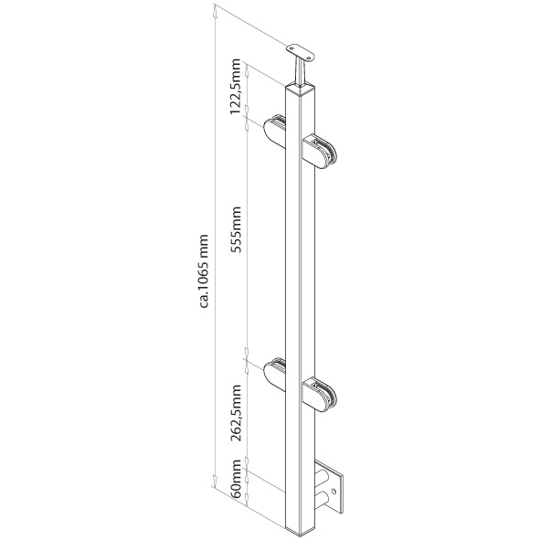 Geländerpfosten mit Glasklemmen, Mittelpfosten Edelstahl V2A