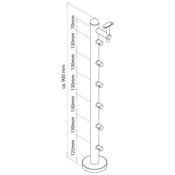 Geländerpfosten mit Querstabhaltern, Endpfosten rechts Edelstahl V2A