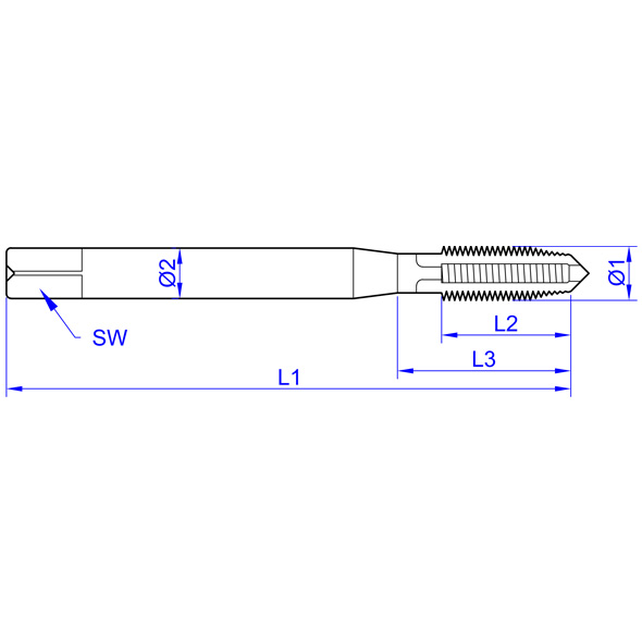 für Durchgangs- und Sackgewinde, Ø - Toleranz 6HX, Bearbeitungstiefe ~ 3 x D