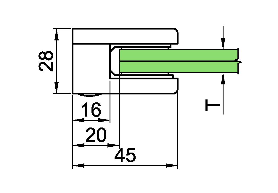 Glasklemme Modell 01 flacher Anschluss Edelstahlfinish