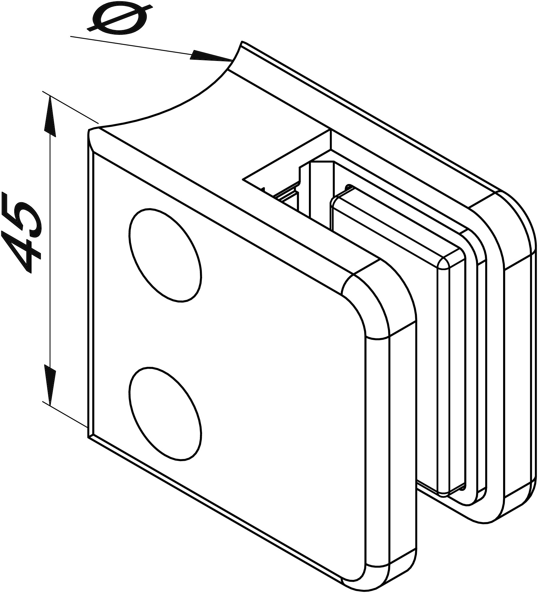 Glasklemme Modell 02 für Rohr Ø 42,4 mm Edelstahlfinish