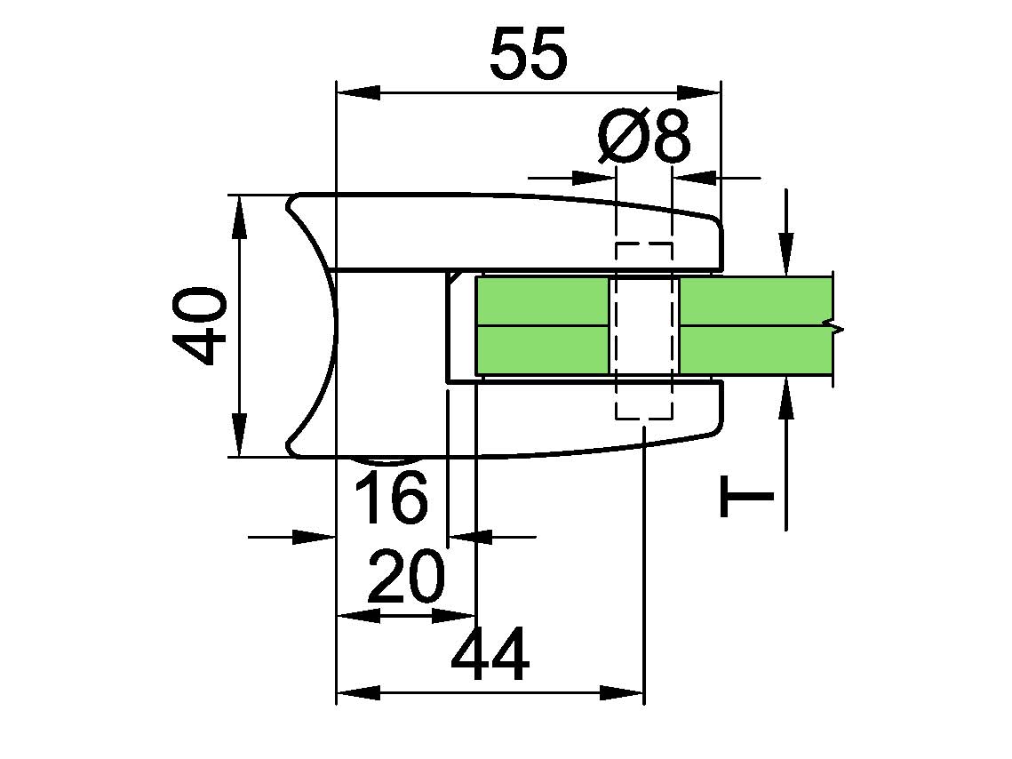 Befestigung mit Zylinderkopfschraube DIN912 M8 x 20 (nicht im Lieferumfang)