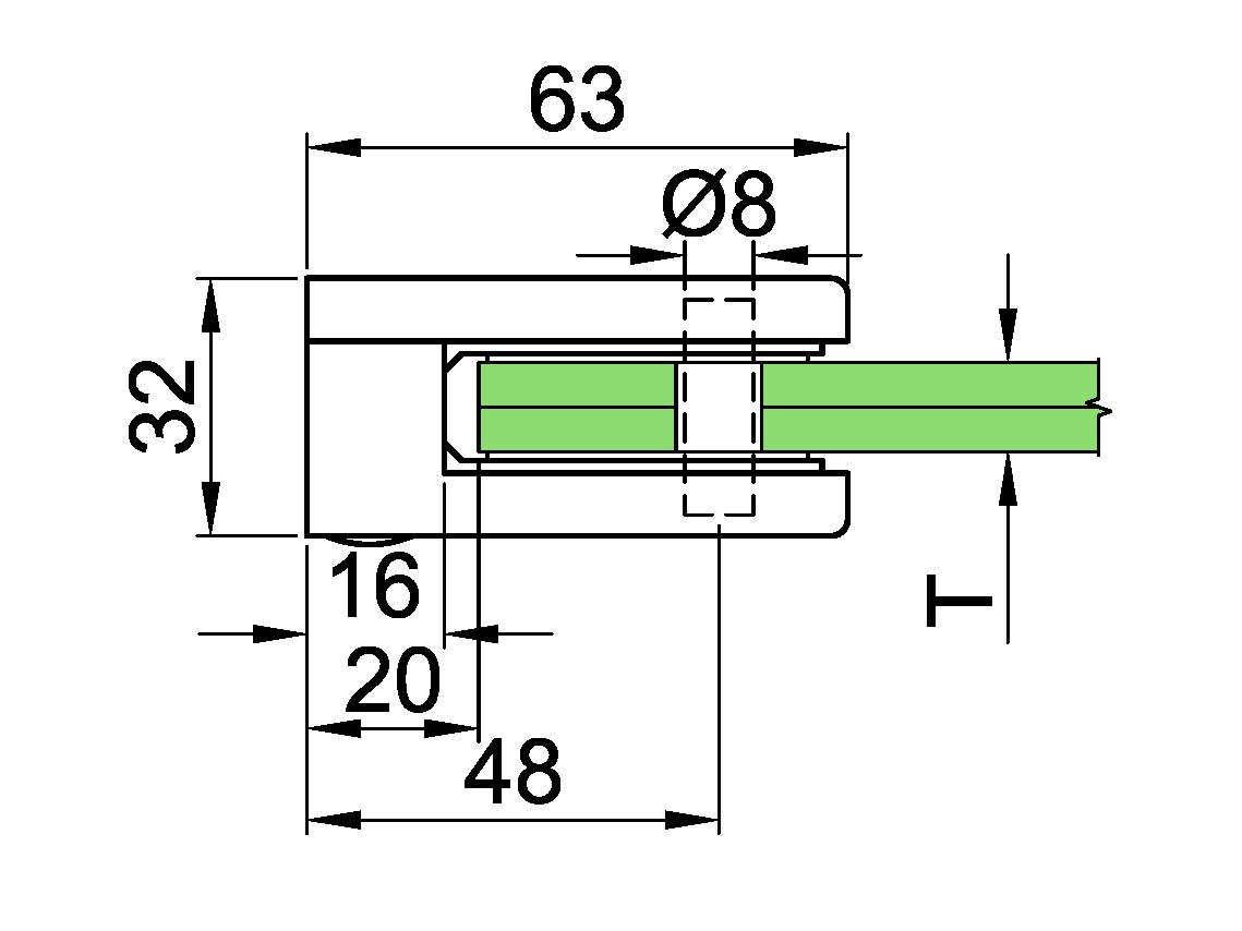 Glasklemme Modell 05 flacher Anschluss Edelstahlfinish