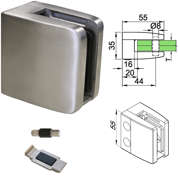 Glasklemme Modell 06 flacher Anschluss Edelstahlfinish