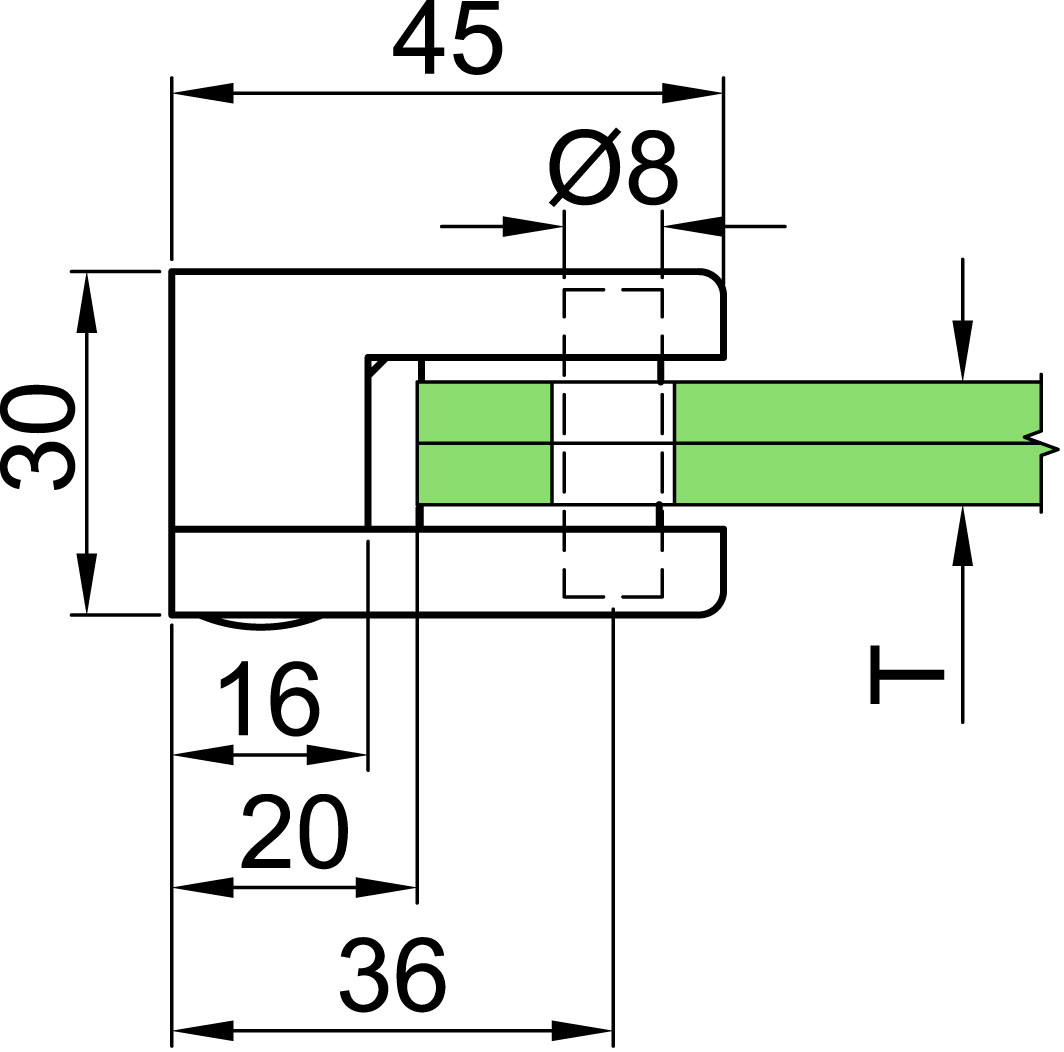 für Glasstärke: 8 mm ESG
