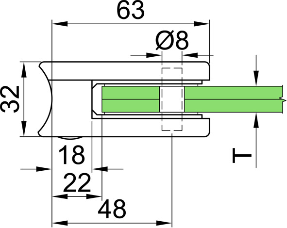 Glasklemme Modell 06 flacher Anschluss Edelstahlfinish