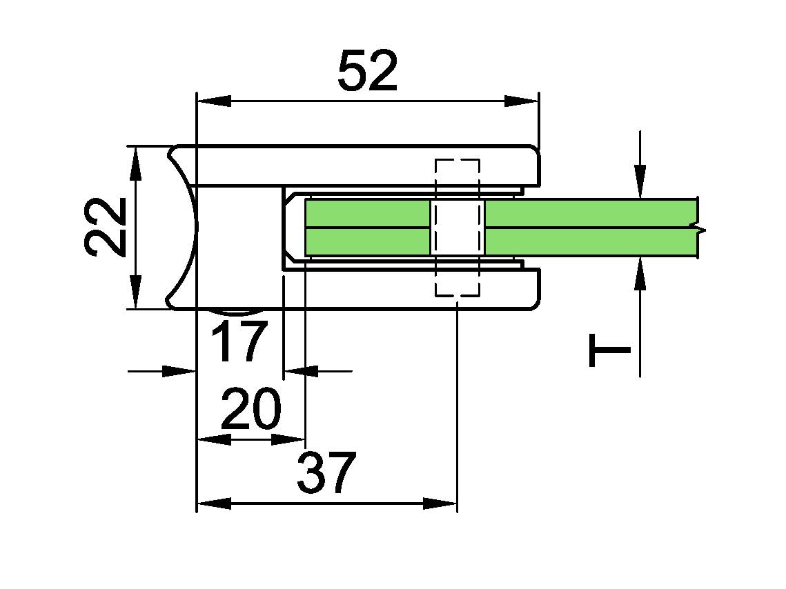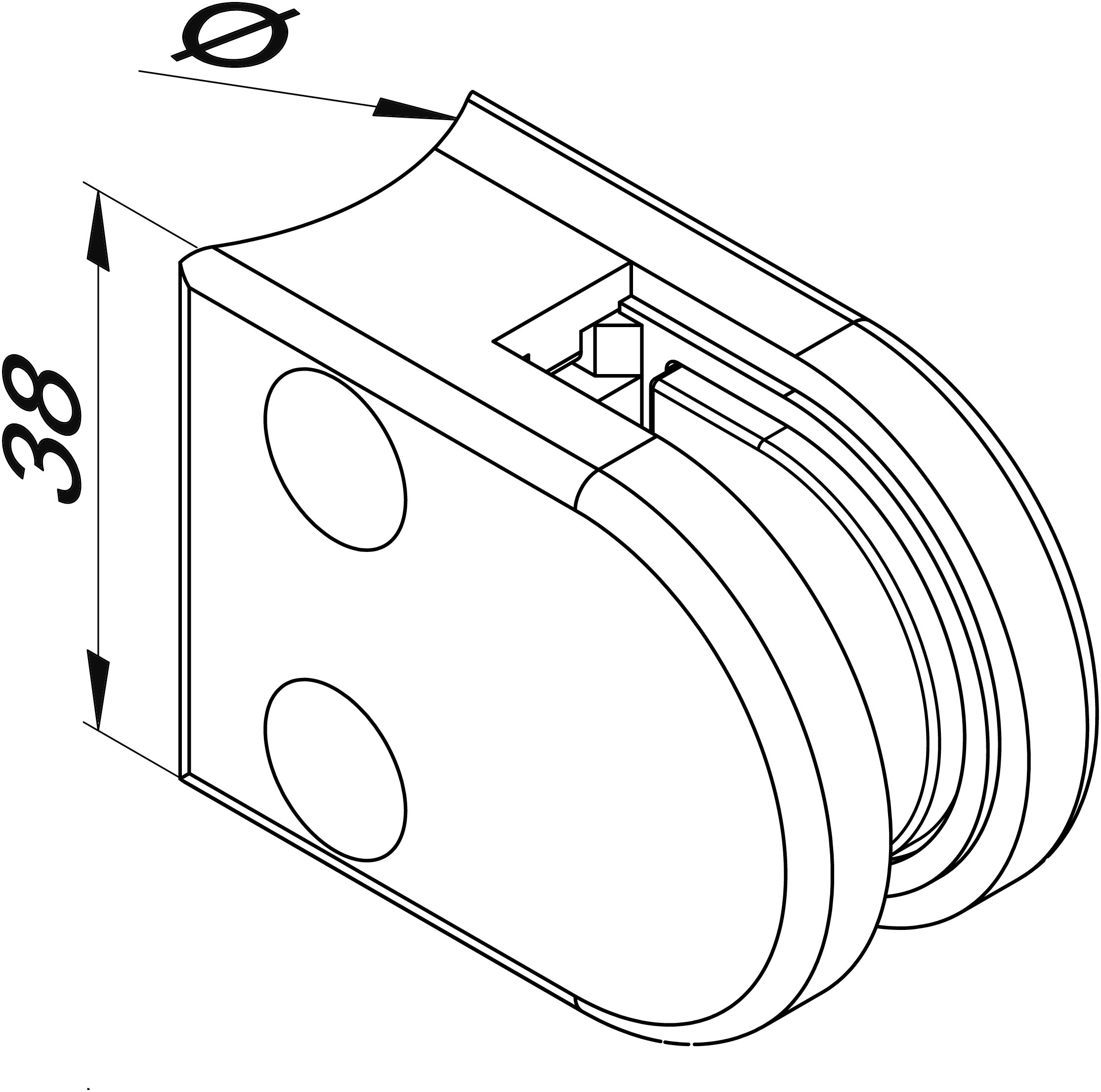Glasklemme Modell 52 für Rohr Ø 33,7 mm Edelstahlfinish