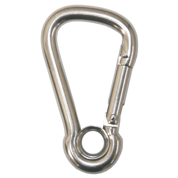 Karabinerhaken Ø 8 x 80 mm asymmetrisch mit Kausche aus Edelstahl V4A