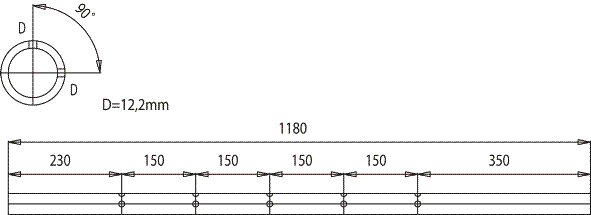 2 x fünf Bohrungen Ø 12,2 mm, versetzt um 90°