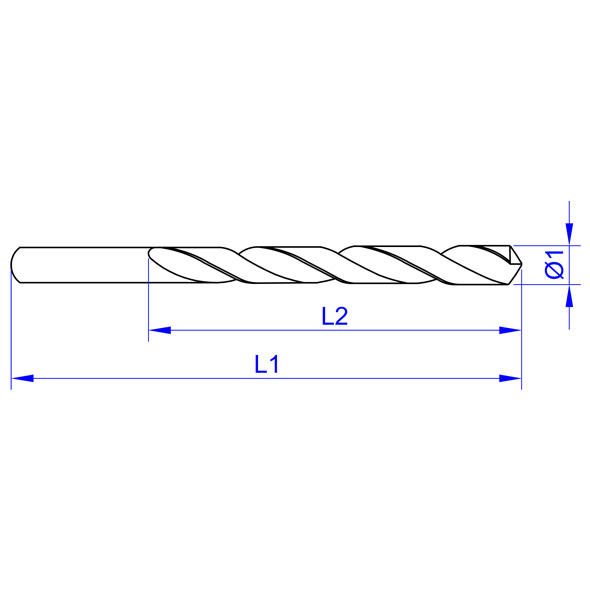 Schaftform zylindrisch, Bearbeitungstiefe ~ 5 x D, Ø - Toleranz h8, ohne Innenkühlung, Schneidenform 118°