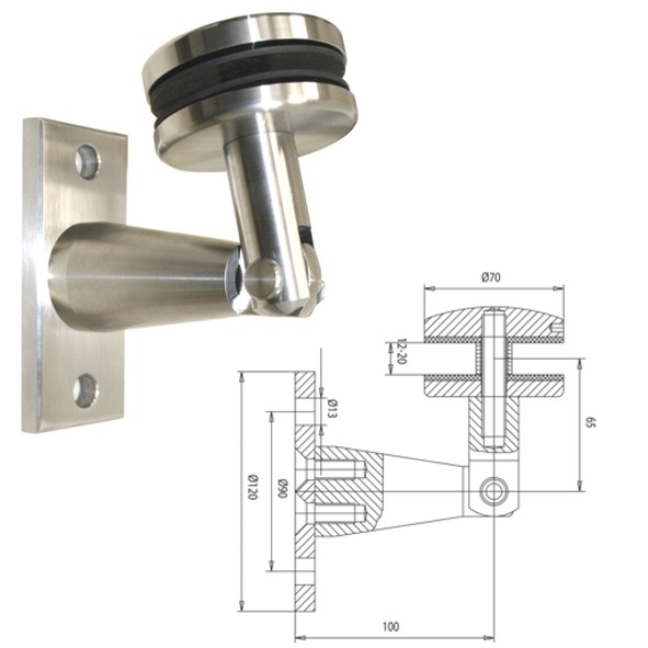 Vordachsystem, Anschluss: Wand-Glas, Platte 120 x 50 x 10 mm Edelstahl V2A