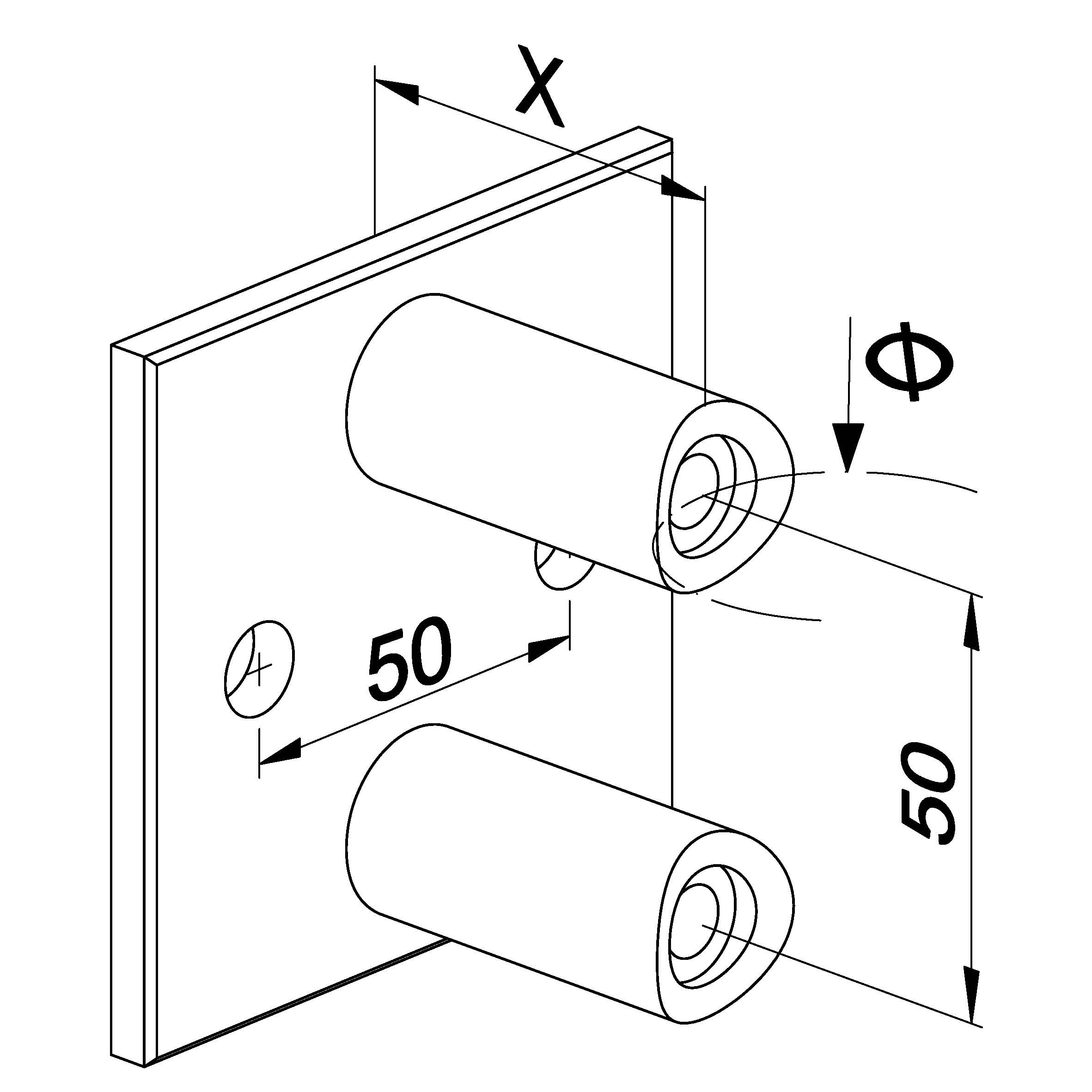 Wandanker 85 x 85 für Rundrohr Ø 33,7 mm Abstand 50 mm Edelstahl V2A