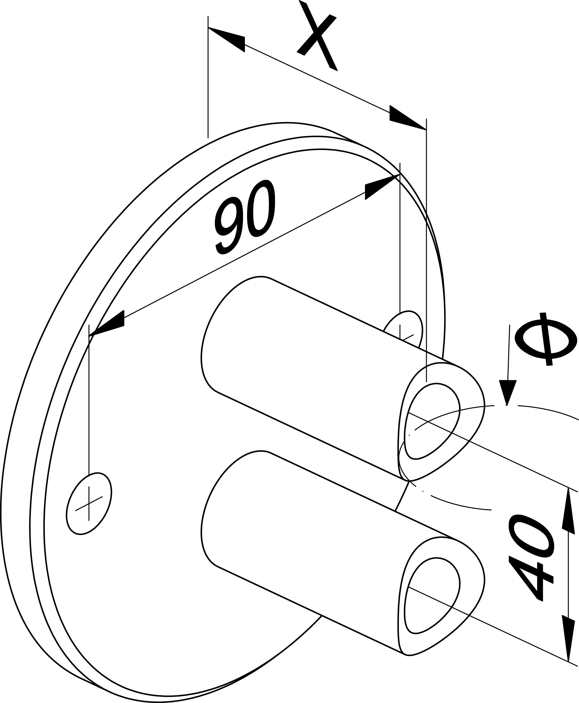Lochung: 2 x Ø 13 mm mit 40 mm Abstand